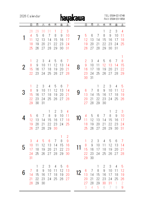 【休日】 土曜日、日曜日、年末年始、5月連休、夏季(お盆)・・・振替えることもあります。下記「営業カレンダー」をご覧ください。
